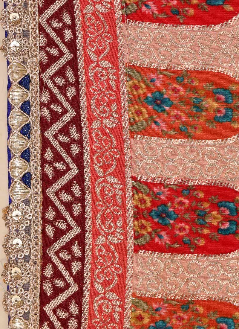 Comes with unstitched blouse fabric. To have the blouse stitched, please select the custom tailoring options. Blouses with elaborate patterns and colors are used for photo-shoot. Color and pattern of the blouse might not be as shown in the image.
